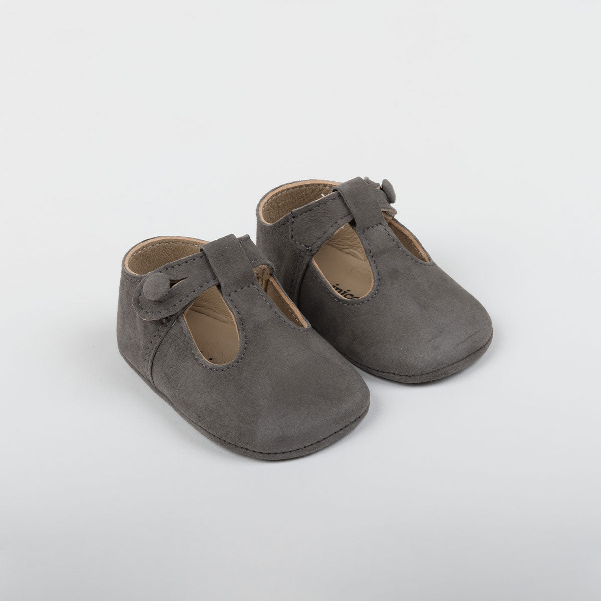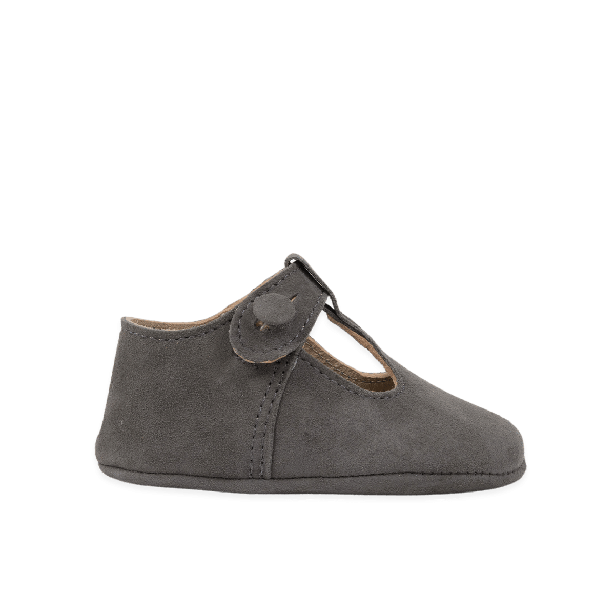 Bailarina de suave pele de camurça de cor mocca. Fecho com botão para maior conforto. Palmilha acolchoada e sola flexível de pele 100%. Pela sua flexibilidade e suavidade, é respeitadora dos pés e muito confortável, tornando-se numa segunda pele.