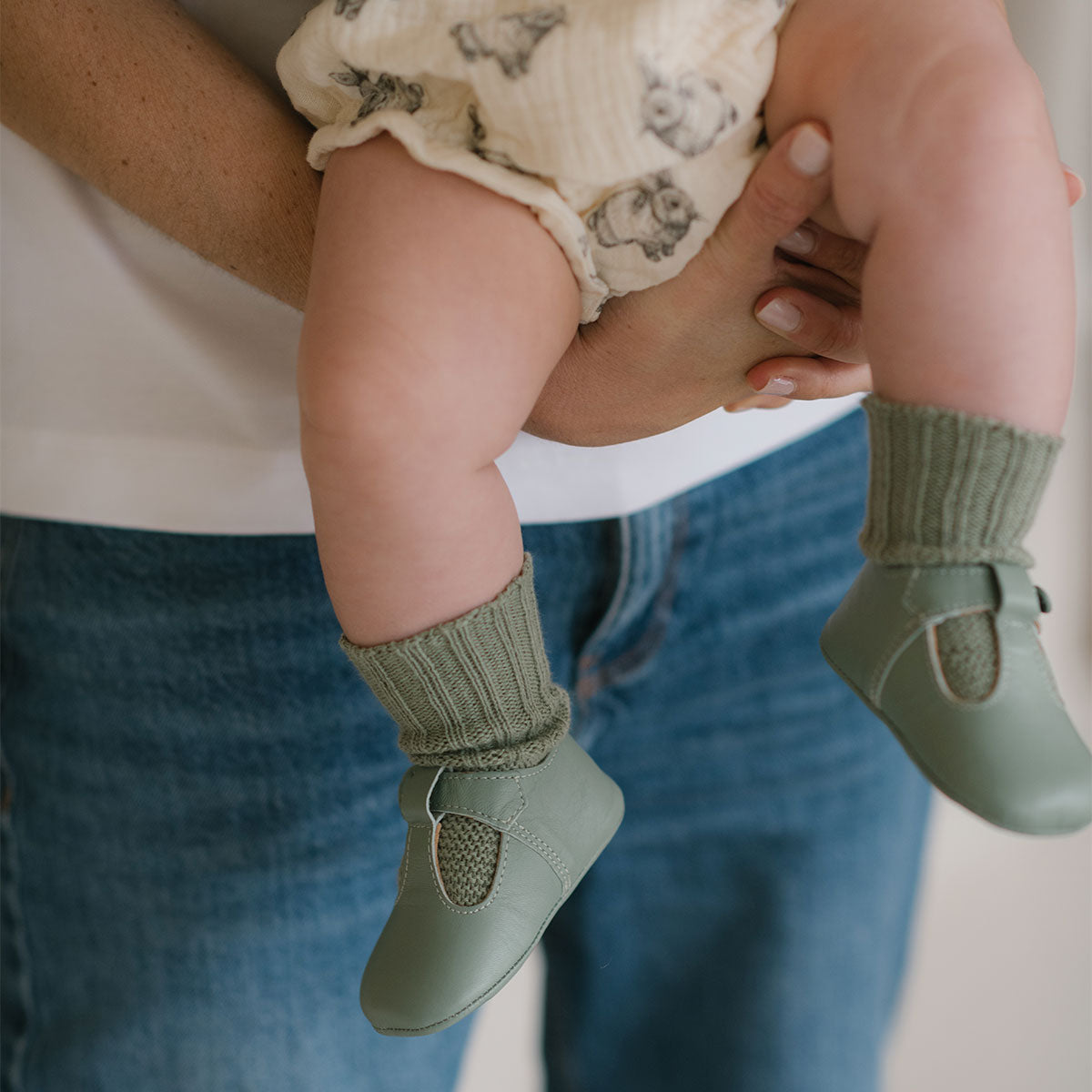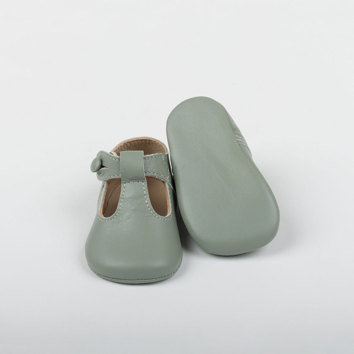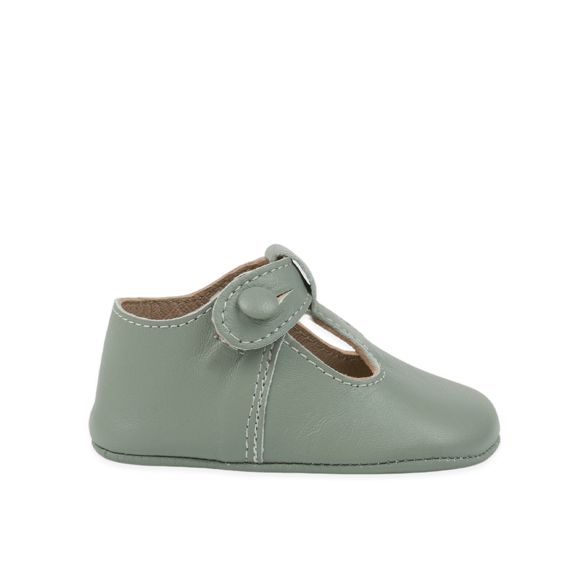 Bailarina de suave pele de napa de cor verde. Fecho com botão para maior comodidade. Palmilha acolchoada e sola flexível de pele 100%. Pela sua flexibilidade e suavidade, é respeitadora dos pés e muito confortável, tornando-se numa segunda pele.